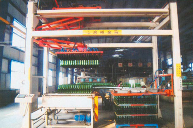 MD1200*1000型夾持式自動(dòng)碼垛機(jī)廣泛應(yīng)用于長頸玻璃瓶罐的自動(dòng)碼垛機(jī)包裝,排瓶分自然排瓶和機(jī)械排瓶兩種形式,該機(jī)采用PLC+觸摸屏控制,自動(dòng)化程度高,操作簡便,可大大減少工人數(shù)量并降低勞動(dòng)強(qiáng)度。系統(tǒng)采用制動(dòng)馬達(dá)控制,準(zhǔn)確無誤地按預(yù)先設(shè)定的位置夾瓶和放瓶,采用氣囊夾瓶平穩(wěn)可靠且無人工污染。